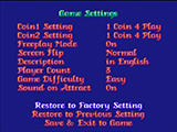 - Ważną funkcją jest Service Mode, gdyż zyskujemy dostęp menu, w którym możemy zmieniać ustawienia trudności gry, liczbę „żyć”, oraz to ile razy można zagrać za jedną monetę… (wystarczy zaprosić znajomych, ustawić „1 grę za 3 monety”, poziom trudności „extra hard” i rozwiązujemy swoje problemy finansowe :P).